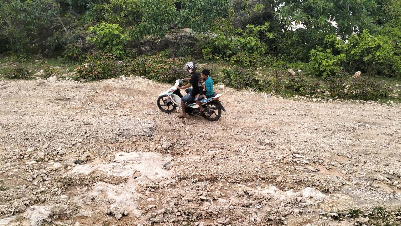 Ini jalan su hancur parah..kami yang kerja di arah fimok dan Basudara yang dari fimok kerja di Bo’a Ju setiap hari menderita