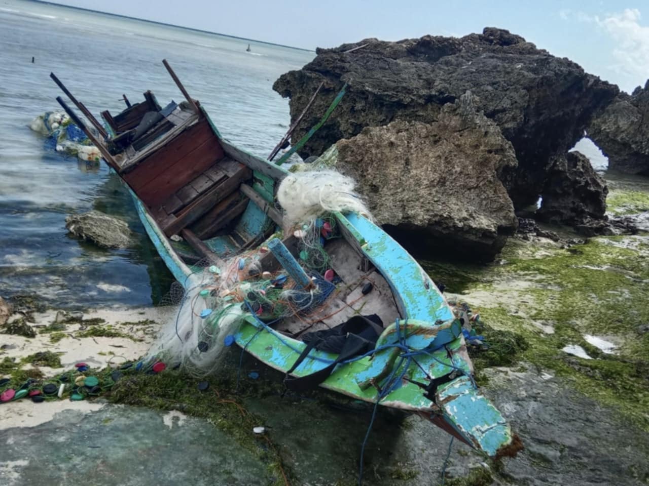 Perahu Nelayan milik Yunus Timu di Pantai Lutubabatu, Desa Tolama, Kecamatan Loaholu, Kabupaten Rote Ndao, dilaporkan rusak berat akibat terjangan gelombang tinggi pada Rabu, 15 Oktober 2025. Kerugian akibat insiden ini diperkirakan mencapai 40 juta rupiah. (Foto: Pemerintah Desa Tolama).