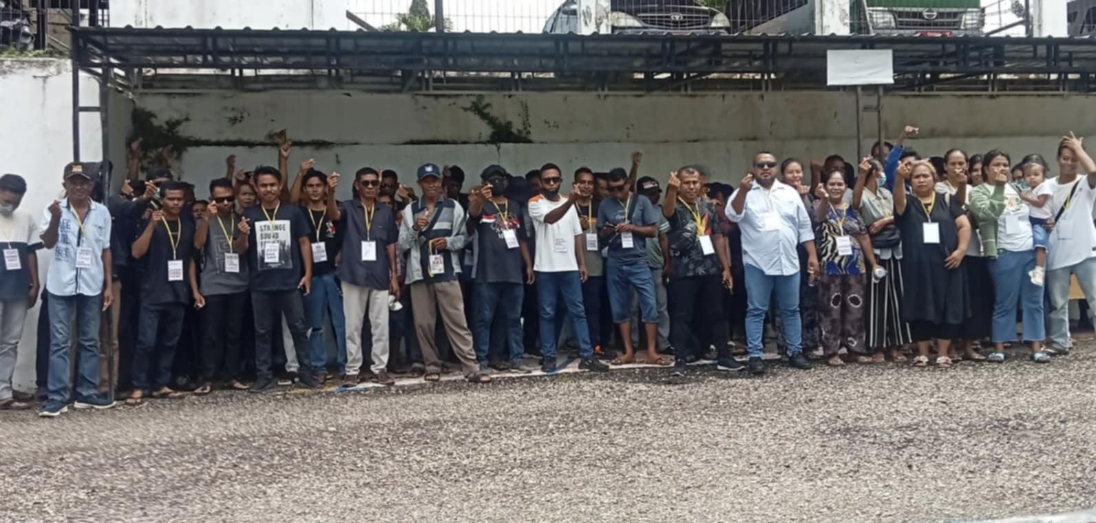Pendukung pihak korban PT. Bo'a Development saat bersama menunggu persidangan, Senin, 2/2/2026 (Foto: YN).