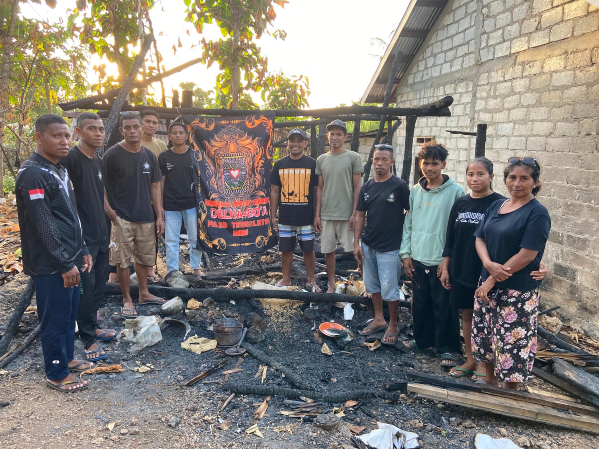 PSHT Ranting Rote Barat Cabang Rote Ndao, mengunjungi kediaman Melkias Rondo korban musibah kebakaran di Dusun Mambota Desa Oenitas (Foto: Sergius S. Tobuawen).